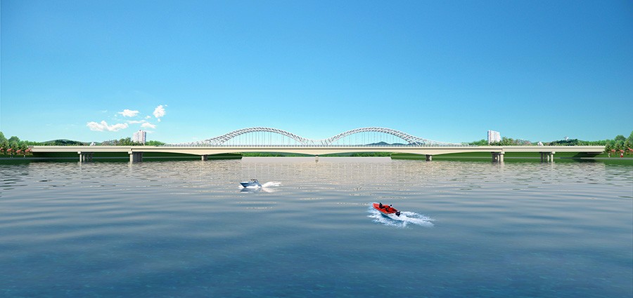 項目概況 :天賜大橋為車行橋,橋梁長度為460m,橋面寬度20m,全橋共3聯:2×40+(55+2×90+55)+2×40;主橋采用現澆預應力混凝土變截面連續箱梁+鋼桁架。引橋采用40m預應力砼(后張)小箱梁,先簡支后連續;下部結構主橋采用花瓶墩、實體承臺和群樁基礎,引橋采用柱式墩、樁基礎。